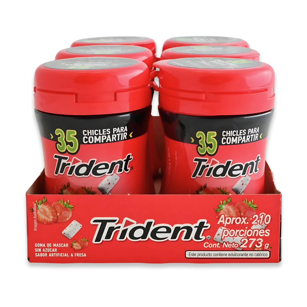 Disfruta la frescura y el sabor irresistible de los Chicles Trident con Microcápsulas sabor Fresa, en una práctica presentación múltiple que incluye 6 tarros de 35 unidades cada uno. Su fórmula con microcápsulas intensifica y prolonga el sabor, ofreciendo una experiencia única en cada bocado.