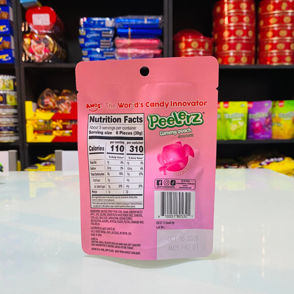 Cada goma ofrece un sabor a durazno intenso pero equilibrado, con notas dulces y frescas que hacen del snack una experiencia agradable y adictiva. Su textura tierna permite disfrutar cada bocado con facilidad.
